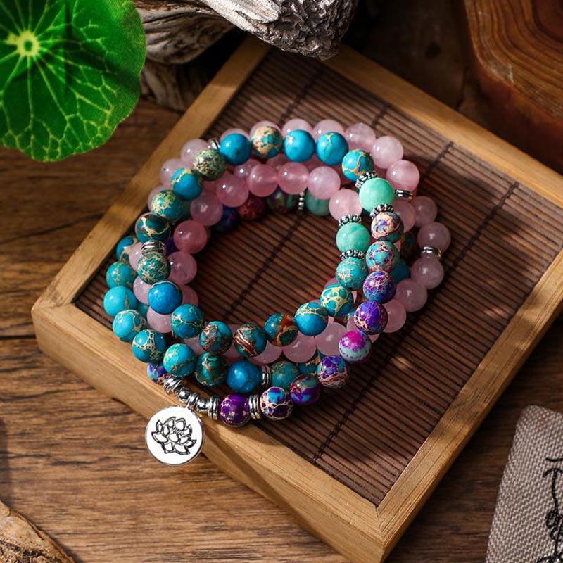 Jade and Pink Crystal: Jade fosters harmony, peace, and growth, while the pink crystal welcomes love and positivity. Wearing a Lucky Jade bracelet can collectively bring positivity, compassion, and wellness to the wearer and even around them.
