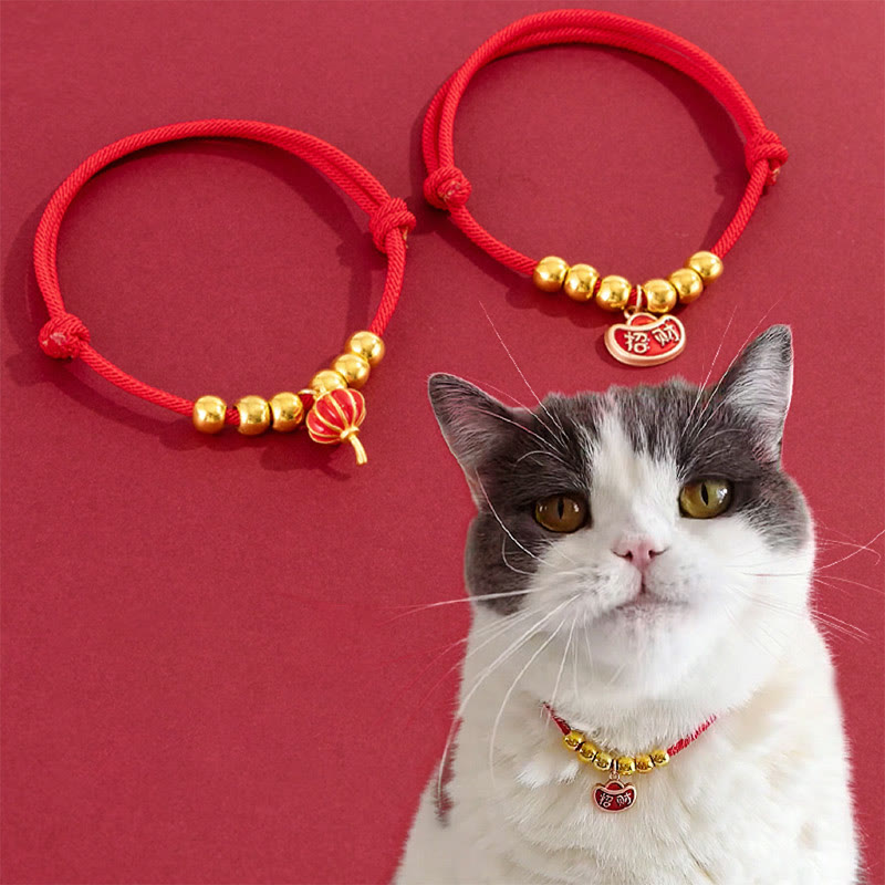 FREE Today: Protection and Connection Red String Bead Yuanbao Fu Character Adjustable Cats Dogs Pet Collar