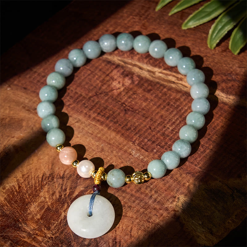 FREE Today: Luck and Auspicious Peace Buckle Jade Round Beaded Bracelet