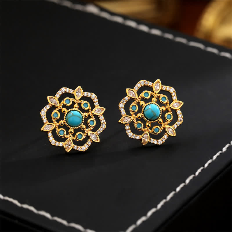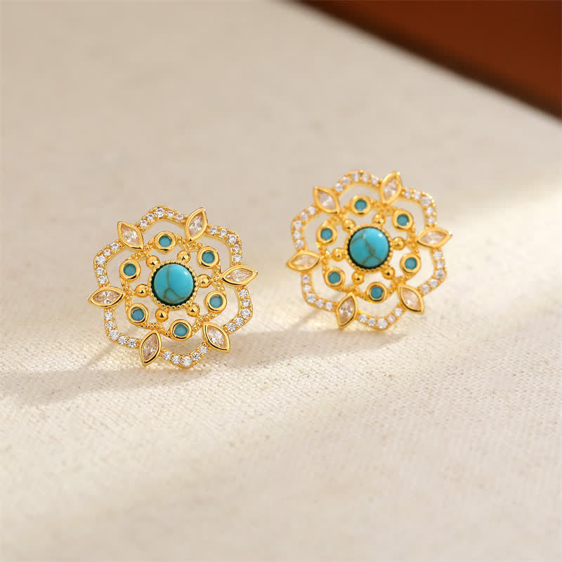 • A gift that makes people emotionally calm and lucky: This item is handmade with Zircon, Turquoise(Synthetic), Copper, 925 Sterling Silver Posts, 18K Gold Plated Copper.