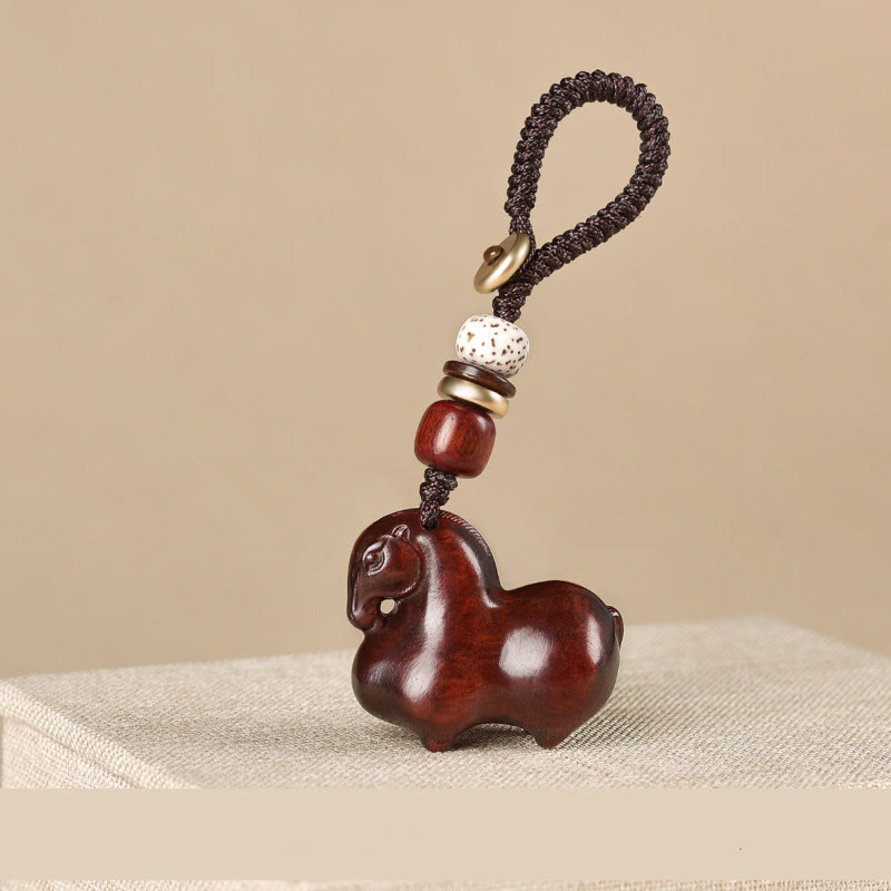 You will receive the Sooth and Protection Year Of The Horse Small Leaf Red Sandalwood Key Chain: protect yourself and your loved ones from negative energy.