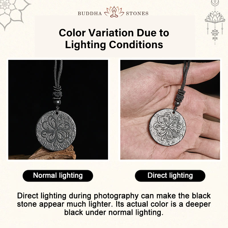Buddha Stones Four Leaf Clover Authentic Shungite Stone Graphite Stone Protection Necklace Pendant